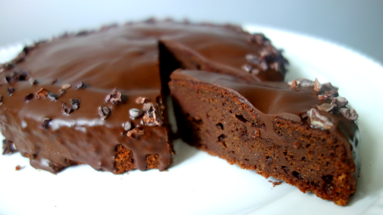 6.-Derrite al baño maría el chocolate junto con el aceite de coco y cuando el bizcocho esté frío vierte por encima, deja que solidifique un poco y sirve.