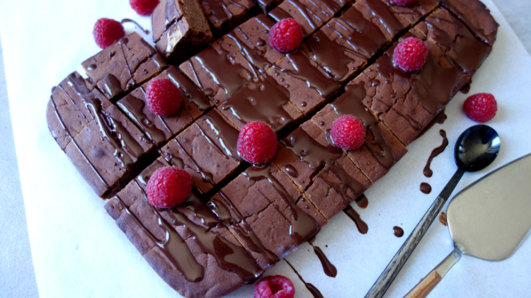 4.-Cuando haya enfriado podrás manipularlo y decorarlo. Coloca al baño maría el chocolate y el aceite de coco. Cuando se hayan derretido, viértelo con la ayuda de una cuchara sobre el brownie. Finaliza la decoración con frutos rojos y disfruta.