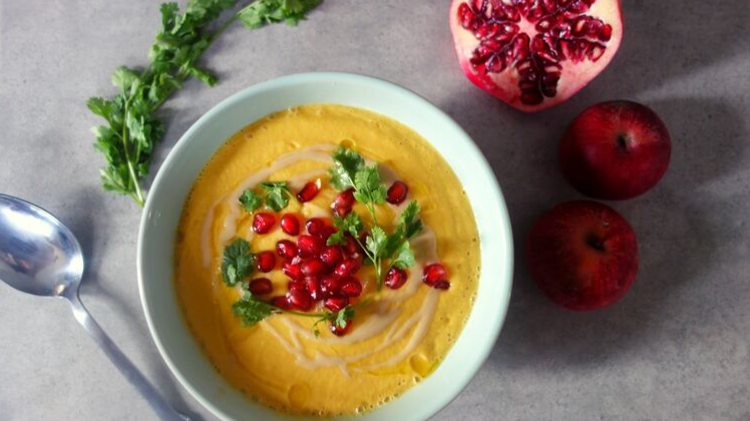 Esto le da a la crema un plus de cremosidad y con el dulzor de la calabaza y las manzanas y el toque tostado del tahín, tenemos una crema mas que perfecta para tomar de primer plato o de cena.